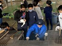 お昼ご飯の後に炊飯場に移動して、たき火をし、『焼き芋体験』をしました。