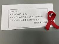昨日、12月1日は『世界エイズデー』ということで、レッドリボン、を一日身に付けるという取り組みを行いました。