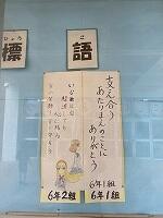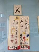 4年生から6年生までの各学級の人権標語が掲示板に飾られていました。
