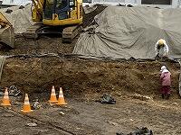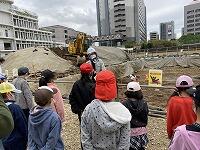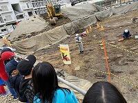 開南小学校の体育館建設予定地に遺構が見つかり、総合的な学習の時間の『地域の学習』として3年生が見学に行ってきました。