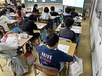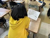 子どもたちは、しっかり放送を聞きながらプリントを見ていました。