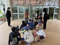 出発前に全員集合した教室で、安全に関する確認やペアの確認をして、外玄関で出発式を行いました。