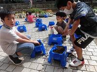 本日も6年生が正門に立ち、登校してくる子どもたちや通りを歩く人々に明るいあいさつをしていました。(^^) 1年生がアサガオの種を植えていました。種の個数、植える間隔、