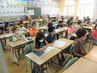 4年2組では初任者研修の一環で、7回ある内の1回目の研究授業が行われました。単元名が「場面の様子を比べて読み,感想を書こう「一つの花」でした。担任は、指導教諭から指導を仰ぎながら、教材研究を行い、授業を構想し、指導案を仕上げて今日の授業に臨んでいました。子どもたちは、叙述をもとに、登場人物の気持ちや行動を読み取り、それを3人グループのメンバーで発表し合いました。他者の考えと自分の考えを照らし合わせることで、思考を広げ、深めようという物でした。子どもたち一人一人が真剣に授業に参加し、めあてを達成していました。(^^)