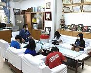 【インタビュー】 4年生が校長室や事務室、職員室、保健室、音楽室を訪ねてきて、自分達が定めたテーマについて質問をして、それをメモする練習をしていました。国語の学習の一環です。(^^)