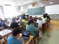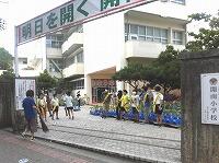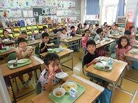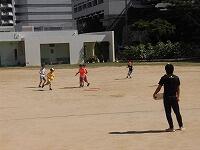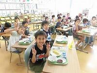 雨水が運動場のあちらこちらに残る豪雨が昨日は降りましたが子どもたちは元気に登校してきました。水たまりは次第に小さくなり、いつの間にか運動場のコンディションが良くなっていました。その運動場では、キックベースボールが行われ、子どもたちはいい汗を流していました。(^^) 二日目のこともあり、子どもたちは一日の流れが分かってきたようで、今日も学習、読書、運動、清掃、昼食時間を落ち着いて過ごしていました.(^^)