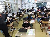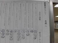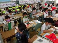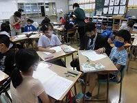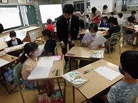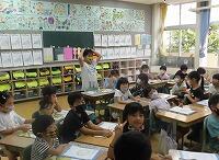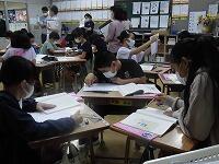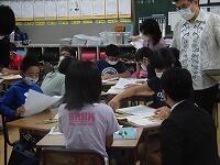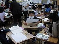 4年2組では初任者研修の一環で、7回ある内の1回目の研究授業が行われました。単元名が「場面の様子を比べて読み,感想を書こう「一つの花」でした。担任は、指導教諭から指導を仰ぎながら、教材研究を行い、授業を構想し、指導案を仕上げて今日の授業に臨んでいました。子どもたちは、叙述をもとに、登場人物の気持ちや行動を読み取り、それを3人グループのメンバーで発表し合いました。他者の考えと自分の考えを照らし合わせることで、思考を広げ、深めようという物でした。子どもたち一人一人が真剣に授業に参加し、めあてを達成していました。(^^)
