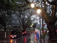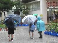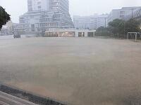登校時には大雨が降り、正門前の道路は送りの車で列ができるほどでした。子どもたちは豪雨の中、雨合羽を着たり、雨傘をさしたりしてたくましく登校してきました。(^^) 8時5分頃になると、急に暗くなり通りの街頭が点灯しました。登校し終えたあとも雨は激しさを増し、運動場は池のようになり、こども園の園庭は水に埋もれてしまいました。そのような中でも、子どもたちはいつものように国語理科社会算数etcの学習活動をおこなっていました。(^^)