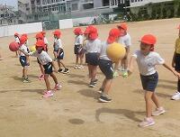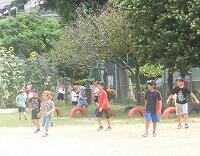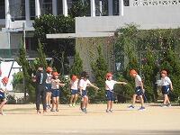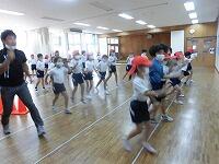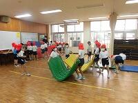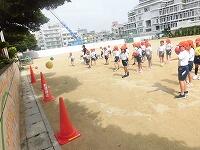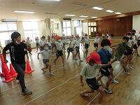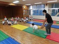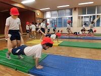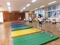 【体育の様子】7月に入り、運動場を使う学年とふれあいプラザを使う学年が入れ替わりました。低学年は室内、高学年は運動場を使って体育を行います。
