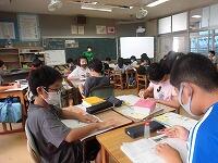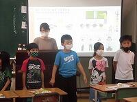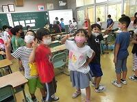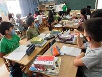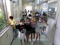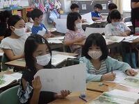 登校時には蝉の鳴き声が聞こえ、お昼頃には運動場の土がまぶしく見える程日差しが強くなりました。このような中でも子どもたちは元気です。(^^) 今日も状況に応じてマスクを付けたりはずしたりして、熱中症とコロナ感染対策をとりながら、勉強、運動、栽培活動、清掃、集団生活etcがんばりました。(^^)