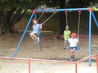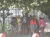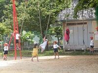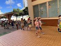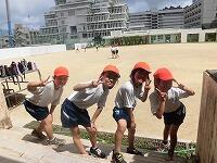 【休み時間のようす】 お昼歩休み時間になりますと、養護教諭より安全に過ごすための注意が流れます。「・・・帽子をかぶり・・、水分補給をし・・・」。子どもたちの中には、暑さがなんのその、元気よく活動している子がいました。(^^)