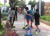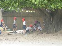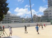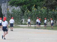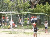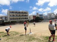 台風6号が接近して参りました。朝の活動の時間と放課後に台風対策を行いました。一年生と二年生はアサガオ、ピーマン、ナスを植えていた鉢を片付けました。(^^) 運動場では5年生がベースボール型の球技を行っていました。(^^)
