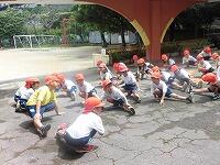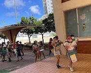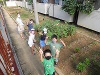 ひまわりやサルスベリの花が満開に咲き、今日の気温は、10時過ぎには32度をこえました。真夏日となりましたが子どもたちは暑さとコロナの対策をとりつつ、今日も様々な活動を経験しました。(^^)