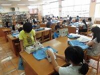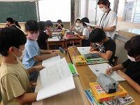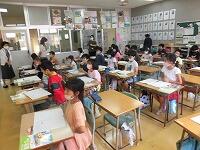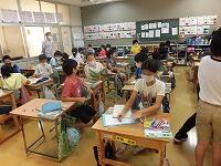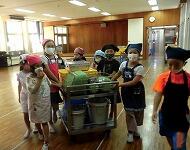 日中は日差しが強く、運動場に立てられているテントは強い光を反射していました。本日から交通安全の一環で、1週間ほどおまわりさんが朝の登校時間に見守りをして下さるようです。(^^) 子どもたちは読書が大好きです。図書室では多くのジャンルの本がそろっており、子どもたちは好きな本を見つけては、夢中になって読書にとりかかります。(^^) 1,2年生の給食運搬は、用務員やスクールサポータースタッフがお手伝いします。4校時が終わる頃から専用の台車に食器や食缶、牛乳箱などを乗せてあげます。配膳室での密集や滞在時間をなるべく少なくします。
