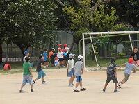 久しぶりに晴れて、あいさつ運動が正門に戻ってきました。また、運動場が使えるようになり、体育や休み時間にはのびのびと体を動かしていました。(^^) 休み時間には多くの子どもたちが運動場に飛び出し、それぞれ好きな活動をして過ごしていました。昔も今も子どもたちは休み時間が大好きです。多少暑かろうが夢中になって遊びます。サッカーなどではラインもひかれていませんが、楽しく遊ぶための創造性を働かせ、協調や折り合いを付けながら試合をしている様子です。遊びの中にもたくさんの学びが詰まっています。(^^)