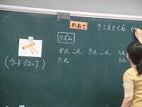 【音楽の示範授業】 音楽専科の先生が中堅教員の学級(1年生)に入って、音楽の授業を行いました。子どもたちは、先生の軽快な語りとウッドブロックの心地よい音にひかれ、楽しみながらリズム感を養いました。(^^)