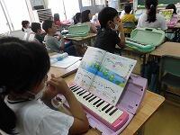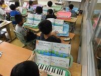 【音楽専科による授業 2年生】 2年生の教室に音楽専科の先生が来ました。ドレミの歌を声の大きさや高さに気をつけて、パート分けして歌ったり、演奏したりしていました。子どもたちは、教師のテンポの良い指示に引きつけられ、自然と膝やつま先でリズムをとっていました。(^^)