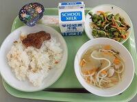 今日の給食は「沖縄そば」。人気のメニューです。(^^) 1年生が6年生の手を借りずに自分達で配膳ができるまでになりました。時には失敗もしますがこれもまたのびしろ、まだまだ成長します。(^^)