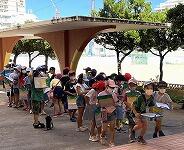 【2年生 町探検】 帽子をかぶり、水筒と探検バッグをもって開南小学校周辺の町並みを観察してきました。暑い中でしたが全員無事に戻ってきました。(^^)