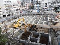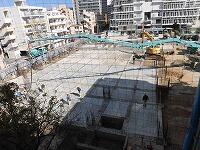 【体育館工事 進捗状況】 土台の型枠がはずされ、おおよその床面積が見えてきました。