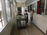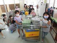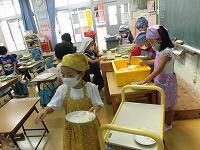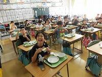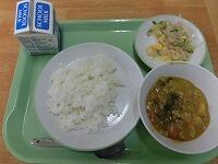 今日の給食のメニューは、人気のカレーライス。もりもり食べてエネルギーチャージしていました。(^^)