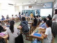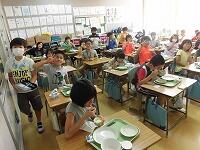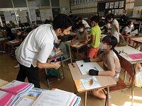 台風16号の影響でしょうか今朝は風が吹き涼しく感じました。子どもたちは元気に登校し、座学や運動、清掃活動、給食、友人とのふれあい、休み時間などに様々な場面に遭遇し、そして体験して発達段階なりに多くのことを学びました。今日もまたすこーし成長しました。(^^) また、初任者研修の一環で、1校時には6-1担任の授業(学級会)が示範授業として行われ、3校時には初任者自身が算数の研究授業を公開し、その後先輩教師から助言をもらっていました。(^^) どちらの授業も、児童に自分の考えや意見を持ってもらい、隣同士やクラス全体でお互いの考えを聞き合うことにより、新たな考えを生み出したり、他の考えがあることに気づいたりする授業スタイルでした。(^^)