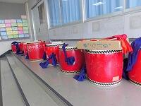 校内放送委員会朝会 五・六年合同エイサー 粘土細工