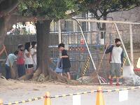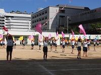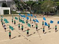 体育学習発表会にむけ、細かな調整を行いながら学級単位、学年全体で練習を行っています。(^^) 放課後は6年生と職員でテント設営と横断幕設置を行いました。(^^)