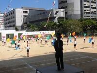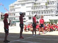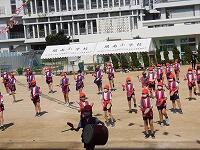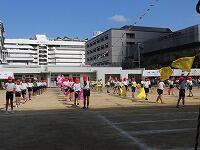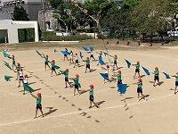 今日は、体育学習発表会に向けて総仕上げを学年毎に行っていました。また、他の学年の演技を見学しました。他の学年の演技を見て手拍子や拍手が起こったり、一緒に踊ったりする子もいました。(^^)