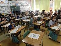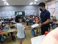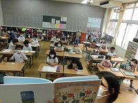 本日も上空には青空が広がり大変過ごしやすい天候となりました。(^^) 週初めの月曜日、子どもたちは元気に登校し、朝の検温チェック、提出物、ランドセル片付け、朝の活動、そして授業と学校生活を送っていました。(^^)