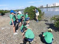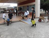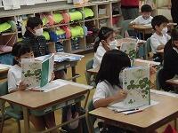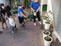 在校生が朝の活動 一年生一人一鉢運動
