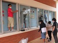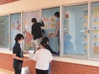 いつもボランティアで学校周辺の草花を手入れしてくださっている大田さんと中村さんが事務室前にクリスマスツリーを飾ってくださいました。(^^) 壁や窓ガラスにもデコレーションを施し季節感が出ています。(^^)