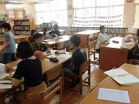 【校内研修の一環で那覇市立教育研究所の與儀真理子指導主事を招聘して4-3にて算数「面積」の研究授業を行いました。その後、研究主題に照らし合わせて授業改善について話し合われました。】