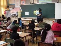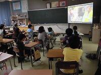 【人権教室】法務大臣委嘱人権擁護委員の二人の講師が来校し、今日は4年生へ人権についてお話し下さいました。 転校生へのいじめがテーマとなっている「勇気のお守り」と,学校裏サイトへの書き込みやメールなどを悪用したネットいじめに焦点をあてた人権啓発ビデオ (DVD)を視聴した後、いじめの解決と,子どもたちに「一人一人が大切な存在なんだ」と気付いてもらうという内容で構成された講話でした。