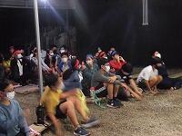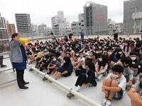 【旗頭練習始まる 指導者と参加者】
