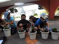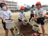 休み時間 ベゴニア植え付け 英語4-1