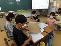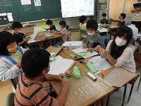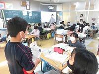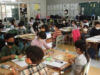 (^^) 3年生の教室では初任者への示範授業の一環で図工「いろいろうつして」と題して、片面なみ段ボールや気泡緩衝材などを使って版画の「版」をつくる活動をしていました。(^^) 5年生の教室では教職3年目研修の一環で道徳「手品師」の授業が行われ、子どもたちは、手品師の迷いから誠実な生き方について各自の考えを発表して共有しました。(^^)