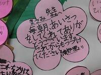 本日は、校内放送と予め撮っておいた動画を流して「ありがとう集会」を行いました。地域にはボランティアで子どもたちの安全な登校を見守ったり、学校周辺の花壇を整備したりしている方がいます。また、安全で栄養のある給食を作っている方など私達の生活を見えないところで支えていいる方々がいます。勤労感謝の日が近いこともあり、運営委員会を中心にサプライズプレゼント作成や事前のビデオ撮影を進めてきました。会の終わりには、放送アナウンスで「・・・では、担任の先生にプレゼントしてください。」のアナウンスが流れると、各教室では、学級の子たちが密かに作っていたメッセージカードを代表の子が担任のところへ行きサプライズプレゼントしました。担任の先生はびっくり!その後お礼の言葉を述べていました。(^^) 校舎内の掲示板には、♬ありがとうの花♪ が咲いています。(^^)