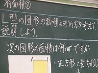 、先に学習した長方形の面積の求め方を応用し、L字型の形の面積を個人そして協働で導き出す方法を考えていました。(^^) こども園の年長組園児が「こうちょうせんせい、 ありがとうございます。」のメッセージボードをもって訪ねてきました。(^^)その後、お礼の言葉と運動会の演技についてお話ししました。(^^)