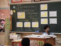本日は北の空に虹が出ている中子どもたちが登校してきました。(^^)4-2では初任者研修の一環で学級会が開かれていました。議題は「なかよし会の内容を決めよう。」で提案理由を一人の子が述べ、その後11個の案と理由が述べられ、折り合いをつけながら内容の絞り込みに向かいました。予め司会団には、話し合いが上手く流れるように対策を立てさせ、自由に意見が述べられて自治意識や主体性を高めようというものでした。(^^)