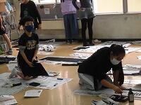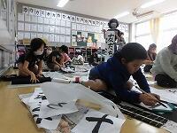 6年生「おうぎにデザイン」 5年生「版画刷り」 1年生「とびだすふうせんへび」