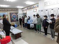 2022年 令和4年 寅年がスタートしました。登校時には薄いねずみ色の雲が空を覆っていましたが、子どもたちはたくさんの荷物をもち元気に登校してきました。(^^)