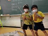 2年生が図工の時間に立体的な作品を作っていました。(^_^)