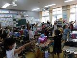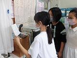 休み時間になり、保健委員の子が「熱中症を予防するため、外で遊ぶ人は、帽子をかぶりましょう。」また、外で遊ぶ前・遊んだあとは水分をとって下さい。感染予防のため、教室では、手洗い・・・」と放送を通じて呼びかけていました。(^_^)