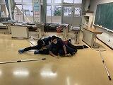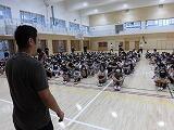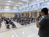 本日は柔道黒帯の山川PTA会長に不審者役と講師を務め頂き、不審者侵入避難訓練を行いました。放送をよく聞き、先生の指示もよく聞く、駆け出すことなく素早く非難する訓練を行いました。講師の山川さんからは「不審者にはいつどこで出くわすかわからない、もし、不審者に出会ったらイカノオスシの行動をとること」など基本的なことを分かりやすく教えていただきました。ありがとうございました。