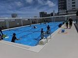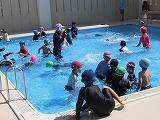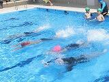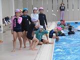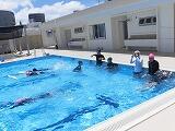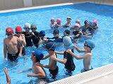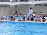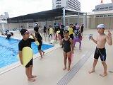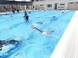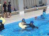 5-1初任研授業 3-2校内研授業 水泳6年1年 旗頭練習