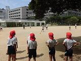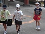 早朝に少し雨が降っていましたが、登校時には止み、晴天になりました。