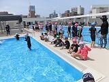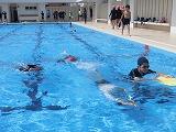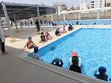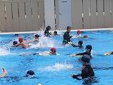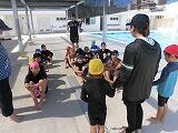 5-1初任研授業 3-2校内研授業 水泳6年1年 旗頭練習