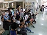 ①1年生の時にお世話になった3年生が、M先生の退職を祝ってメッセージを届けに来ていました。(^_^)