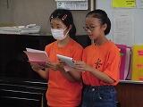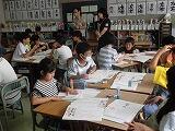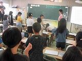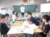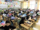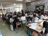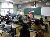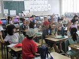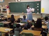4年生が英語の学習でAETの発音をまねて学習していました。